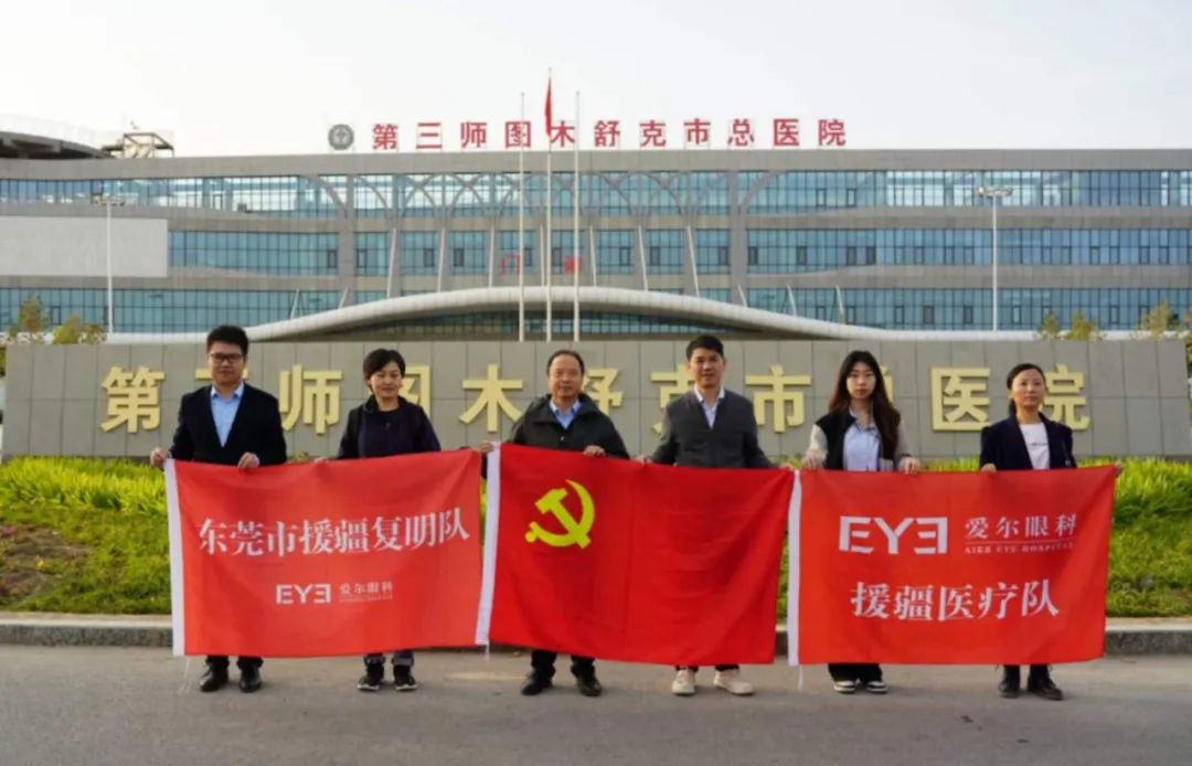 启动仪式上,东莞市卫生健康局三级调研员宋洪南为刘斐院长授项目队旗。随后,由医院党支部书记、总院长刘斐带领5名医务人员(其中3名党员)奔赴新疆图木舒克市,开展援疆复明工作。该项目将持续开展3年,期间,爱尔眼科医院将每年派出医护志愿服务团队到“师市总医院”进行医疗协助。