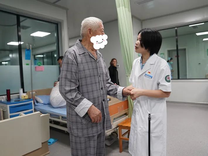 As a veteran, the 83-year-old Lu Lao is still in high spirits, and after the operation, he lifted the gauze for a moment and held the hands of the Dongguan doctor to express his gratitude