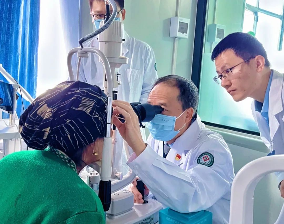 After the listing ceremony, Dean Liu Fei went to the ward to perform eye examinations and comfort the patients, and supported local medical staff to carry out surgery. After rapid training and overall layout, the expert team and local medical staff cooperated tacitly that day, overcame various conditions, and completed 14 vision restoration surgeries with high quality and efficiency, and it was about 10 o'clock in the evening.