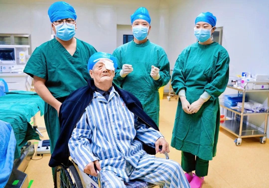 The patient, Lu Lao, is 82 years old and a veteran who went to Xinjiang in 1958. The patient has been suffering from cataracts for many years, and his condition is more complicated, and he originally thought that his future life would be spent in the dark, but after Dean Liu Fei operated on him, he regained his light again.