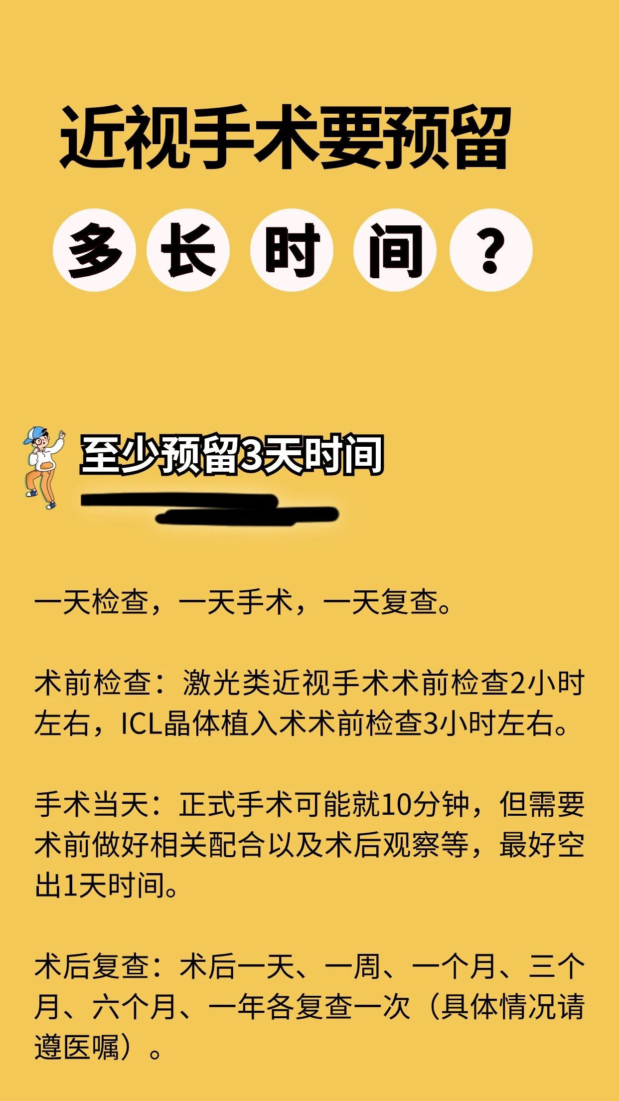 东莞爱尔眼科屈光手术专科陈晓蓓主任提醒:一般来说,近视手术全程需要三步,术前检查—手术—术后复查,三项内容都很重要,通常完成需要3天,近视手术不建议当天检查当天做手术。