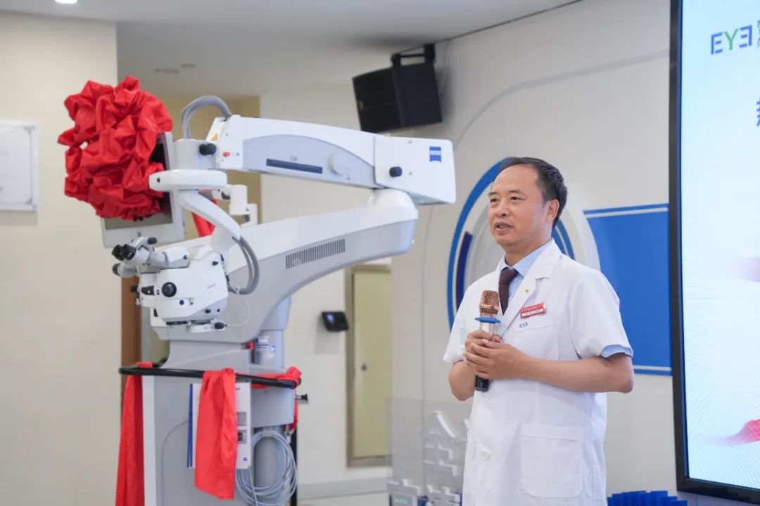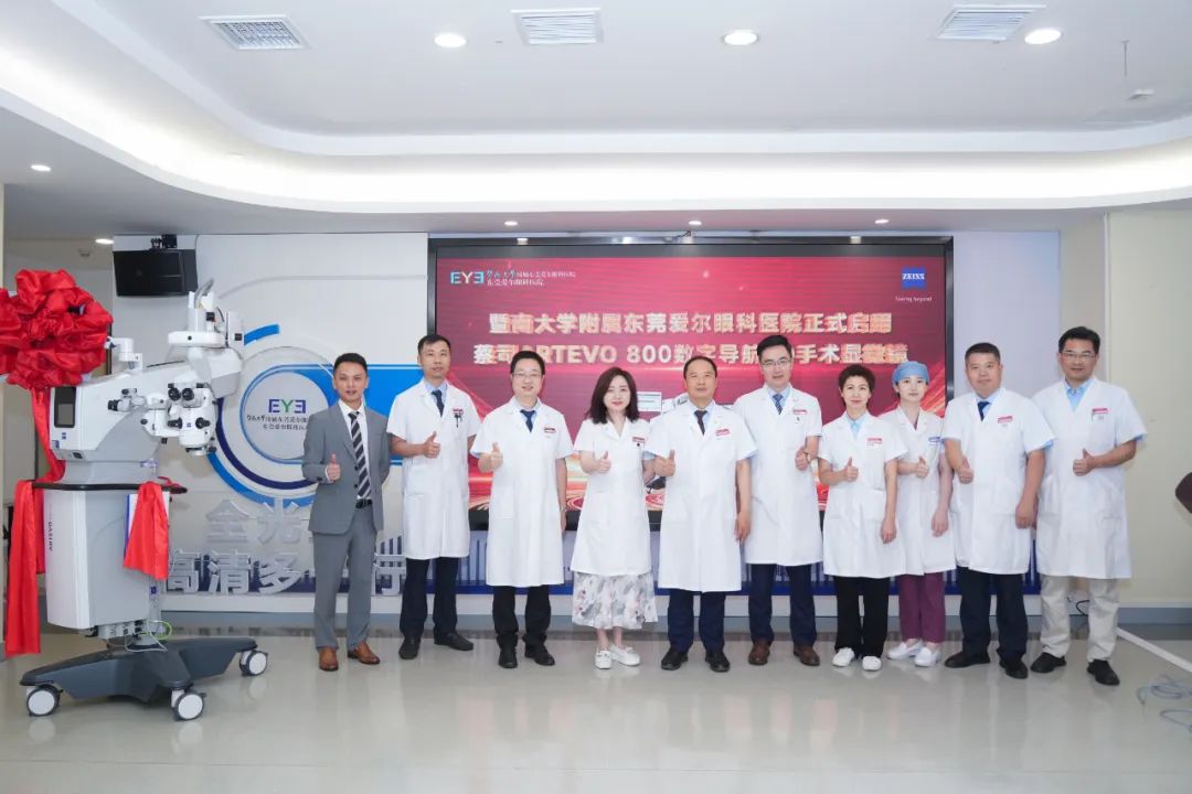 在设备开机仪式暨基地揭牌仪式上,东莞爱尔眼科医院刘斐院长携核心学科团队,与蔡司公司大南区应用经理王建华共同启动设备。蔡司ARTEVO800是全球领先的数字化眼科手术设备,适用于开展导航散光人工晶体植入、TICL(散光有晶体眼人工晶体)植入手术、OCT(光学相干断层扫描)导航下黄斑前膜手术、角膜内皮移植(评估内皮贴附情况)等多种术式。
